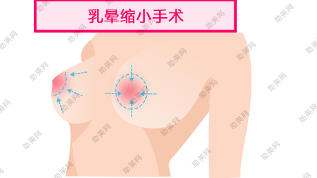 乳晕缩小的手术比较简单,即切除过大的部分乳晕组织,使之与乳房大小比较相称,并使之圆滑对称。